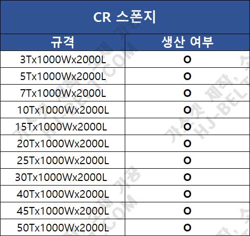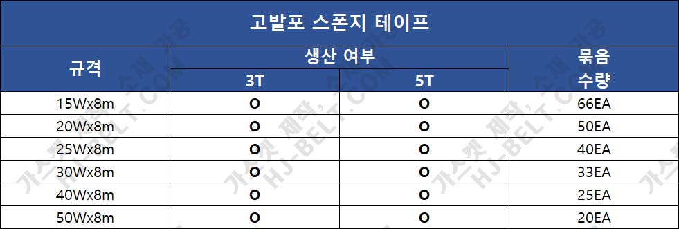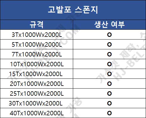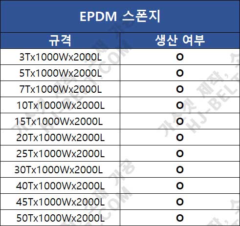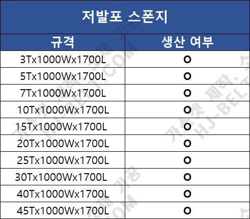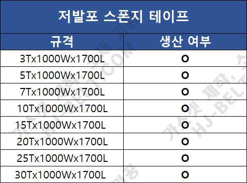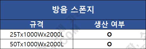 스폰지 스폰지는 여러 소재의 스폰지가 있습니다. 또한 방음 스폰지, 스폰지 테이프 제품도 있습니다.아래 제품군 명칭을 클릭하시면 바로 해당 제품군의 설명으로 연결됩니다. 스폰지 방음 스폰지 스폰지 테이프 스폰지 스폰지의 종류는 다섯 가지가 있습니다.고발포 스폰지 > EPDM 스폰지 > CR스폰지 > 저발포 스폰지 > EVA스폰지 순으로 경도가 높아집니다.경도가 낮은 제품이 위쪽으로 오게 정리했습니다.기본 검정색입니다. 고발포 스폰지 고무를 발포시켜 만든 스폰지 입니다.약42T 원장을 두께별로 제단하는 방식으로 원두께공차 있습니다. EPDM 스폰지 고무를 발포시켜 만든 스폰지 입니다.약53T 원장을 두께별로 제단하는 방식으로 원두께공차 있습니다. CR 스폰지 고무를 발포시켜 만든 스폰지 입니다.약53T 원장을 두께별로 제단하는 방식으로 원두께공차 있습니다. 저발포 스폰지 고무를 발포시켜 만든 스폰지 입니다.약48T 원장을 두께별로 제단하는 방식으로 원두께공차 있습니다. EVA 스폰지 고무를 발포시켜 만든 스폰지 입니다.약42T 원장을 두께별로 제단하는 방식으로 원두께공차 있습니다. 방음 스폰지 계란판이라고도 불리는 방음 스폰지 입니다. 고발포 스폰지 테이프 고발포 스폰지 4장을 붙인 후 폭 별로 재단 가공한 제품입니다.묶음 단위로 판매합니다. 저발포 스폰지 테이프 3T, 5T제품은 롤 형태로 말려있습니다.접착력이 우수합니다.